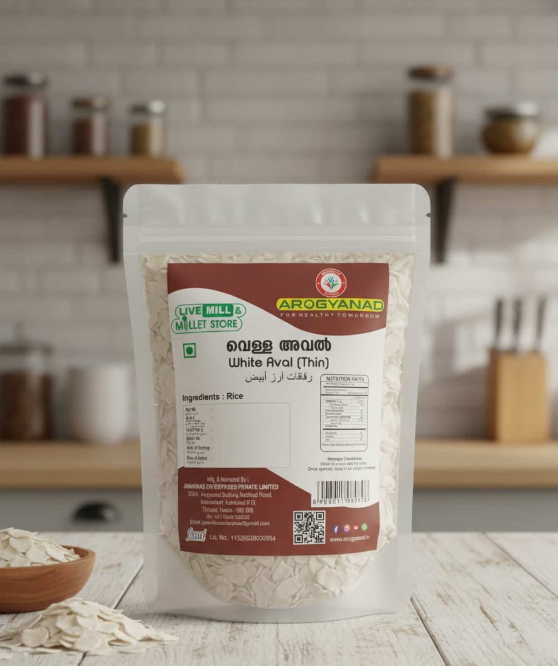 Arogyanad White Aval (250 gm) is made from carefully selected white rice grains that are flattened into light and delicate flakes. Known for its purity and soft texture, this aval is perfect for preparing quick and wholesome meals such as aval upma, poha, and sweet or savory snacks. Its natural taste and versatility make it a must-have ingredient in every kitchen, suitable for both traditional recipes and modern dishes.